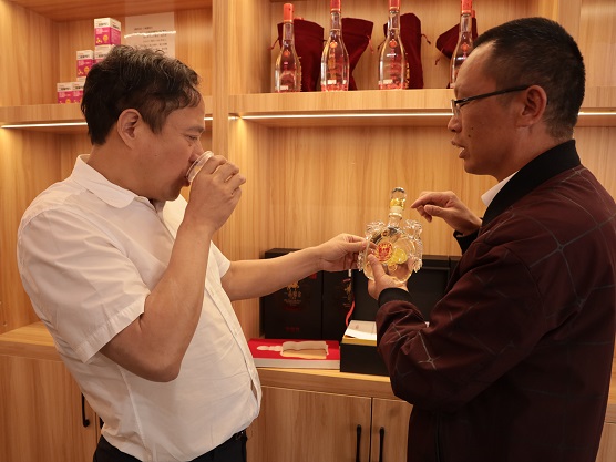 盧廷平總經理正在給向貴瑜副州長介紹集團公司新產品——“馬上封侯”