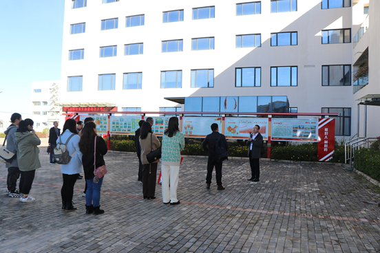 在企業宣傳欄,陳德斌廠長向稅務局領導一行介紹了好醫生集團30多年的發展歷程、及圣科藥業發展情況和公司的企業文化。
