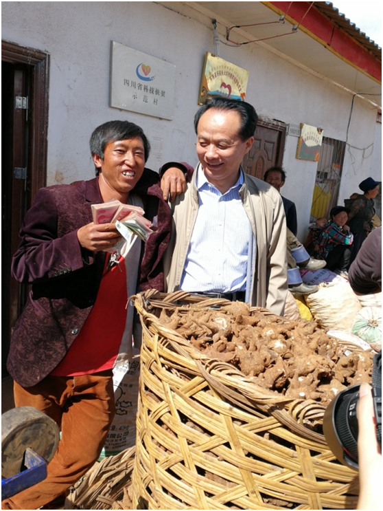 自然環境優良的大涼山,有野生藥材生長的記載,種植中藥材具有得天獨厚的優勢。耿福能把企業自身生產需要的中藥材原料與產業扶貧結合起來,開始在大涼山地區推廣種植中短期中藥材計劃,以"企業+支部+協會+農戶"的模式,層層負責、層層落實,發展當地附子產業,短中長期收益結合,可以一舉多得月幫助貧困戶快速脫貧。”