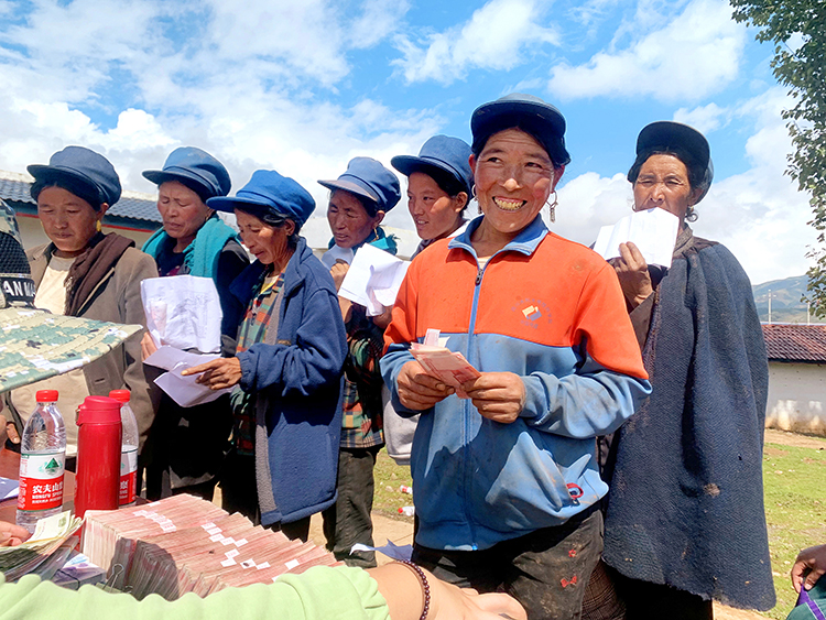 2021年9月附子花開幸福來,火燈村的村民拿到附子收購款喜笑顏開。